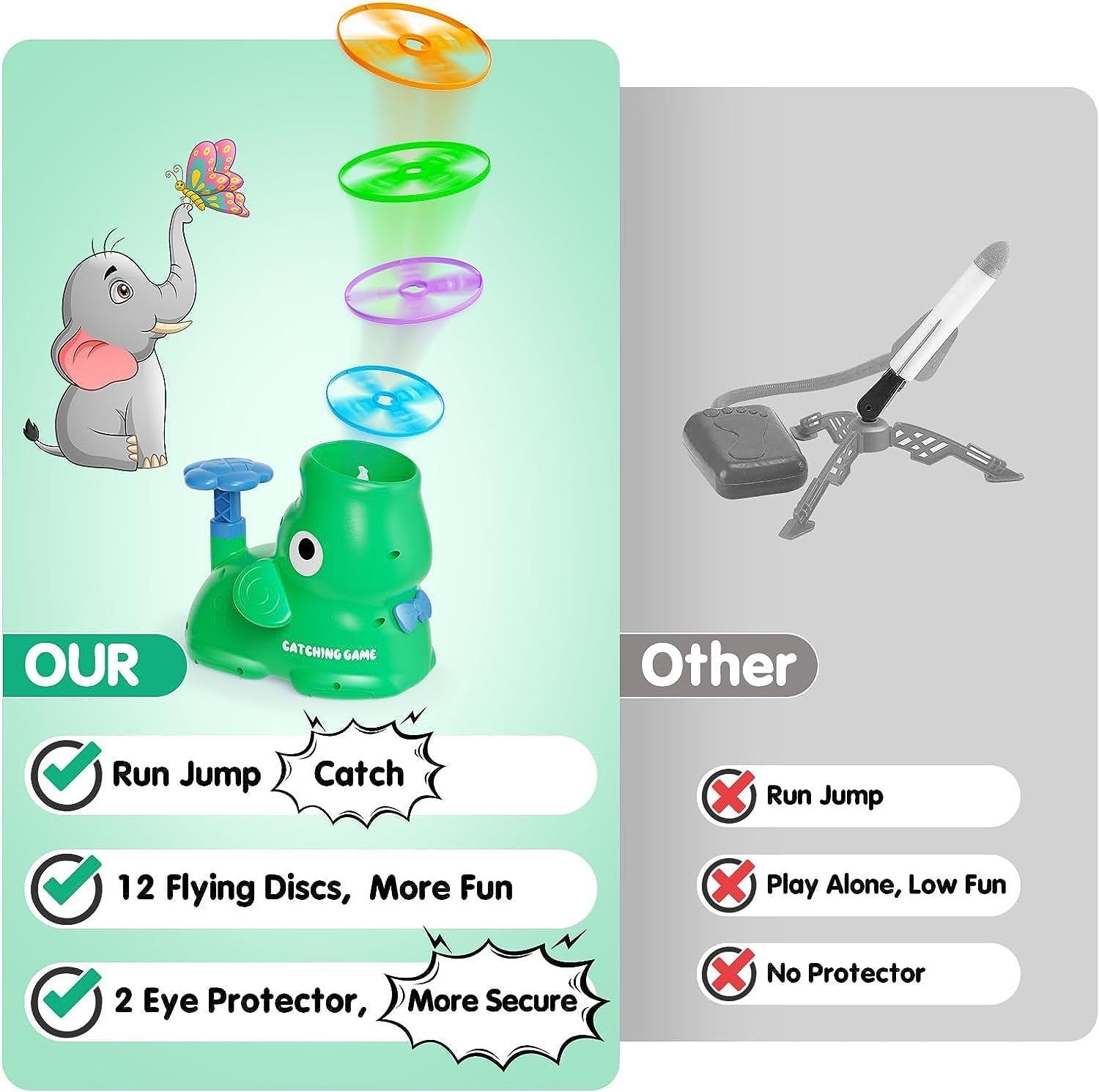 Type de jeu: lancer et attraper des disques. Univers: jeux en plein air. Facilité de prise en main: conçu pour les petites mains. Âge recommandé: 3 à 8 ans.