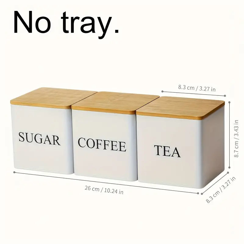 Lot de 3 Boîtes de Rangement Noir et Blanc, Contenants Métalliques pour Grains de Café, Sucre et Thé- Couleur blanche