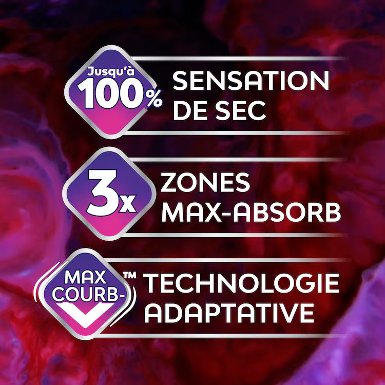 - Absorbance exceptionnelle: restez au sec tout au long de la nuit grâce à une absorption efficace qui retient rapidement le flux.