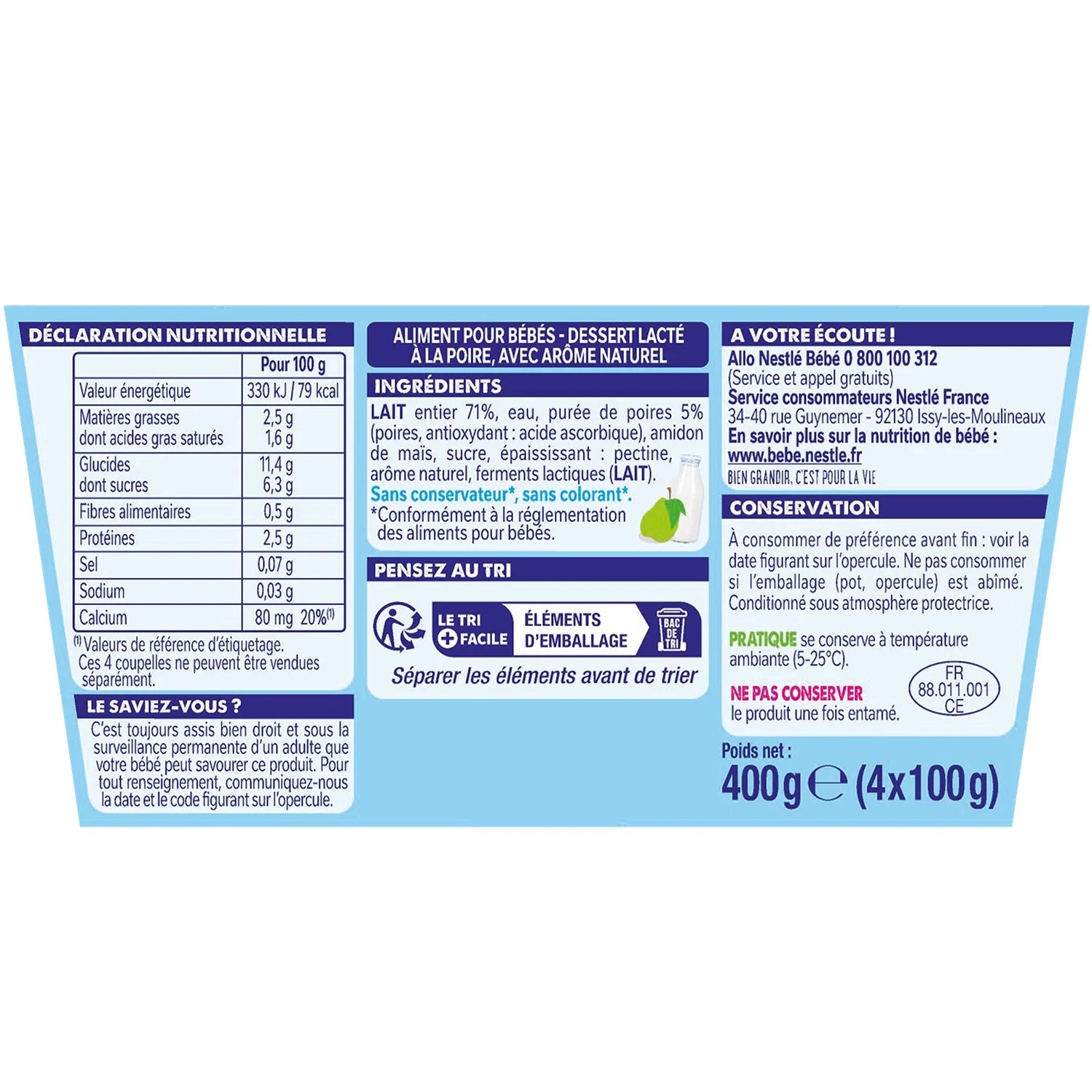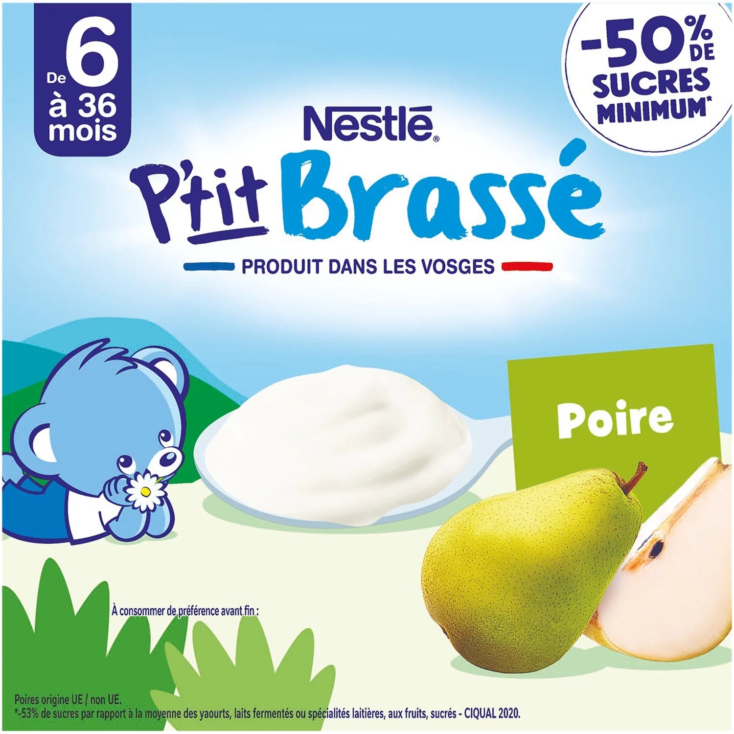 NESTLÉ - Yaourt Bébé P'tit Brassé Poire - dès 6 mois - 4 x 100g