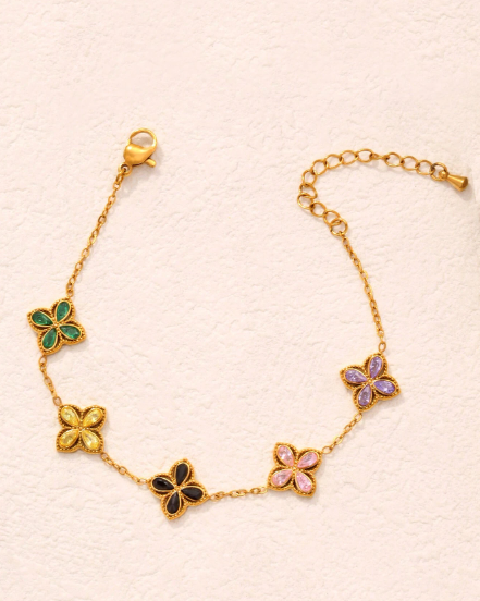 Camhanno 1 pièce de bracelet diamant sauvage à quatre feuilles en acier inoxydable de mode de luxe léger,